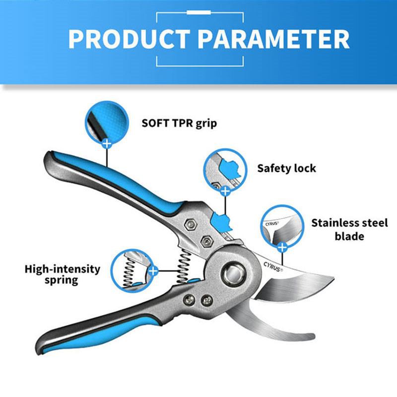 تتميز أدوات التقليم المصنوعة من الفولاذ المقاوم للصدأ بقبضة TPR ناعمة ، وقفل أمان ، وشفرة من الفولاذ المقاوم للصدأ ، ونابض عالي الكثافة.